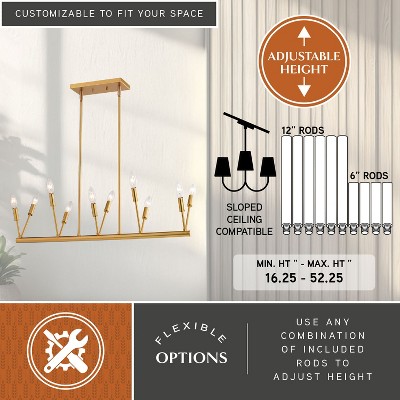 VAXCEL Warwick 10L Brass Contemporary Linear Chandelier Island Pendant Light Fixture