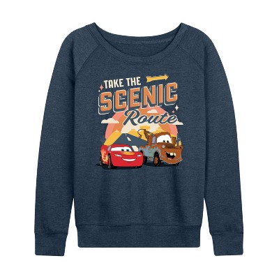 Women's - Cars - Take The Scenic Route Lightweight French Terry Wide Neck Long Sleeve Graphic Shirt