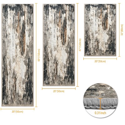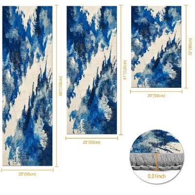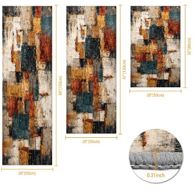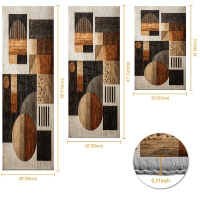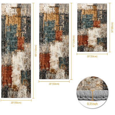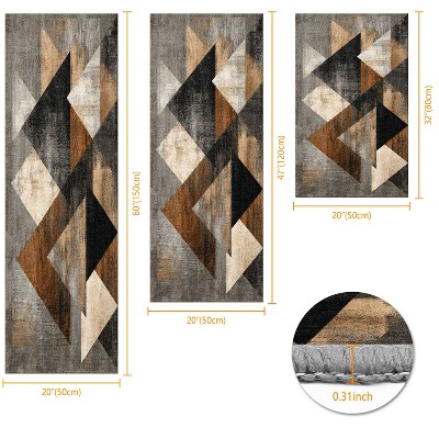 3Pcs Kitchen Rug Set Non-Slip Washable Abstract Soft Mat for Kitchen Bathroom Hallway Laundry Sink Floor