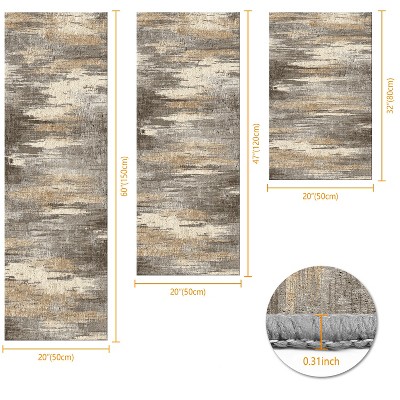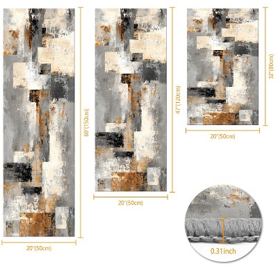 3Pcs Kitchen Rug Set Non-Slip Washable Abstract Soft Mat for Kitchen Bathroom Hallway Laundry Sink Floor