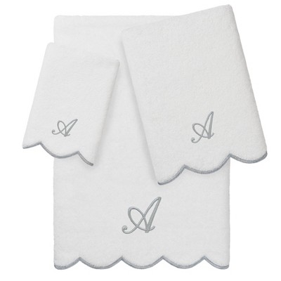 Linum Home Textiles 100% Turkish Cotton ADORNIA Scallop Personalized Towel Collection - Grey