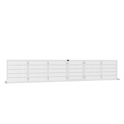 Skyzone White 6-Panel Foldable Wooden Pet Gate, Stable Freestanding Safety Barrier with Support