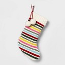 Storied Home Acrylic Crocheted Stocking with Pattern and Pom Poms, Multicolor