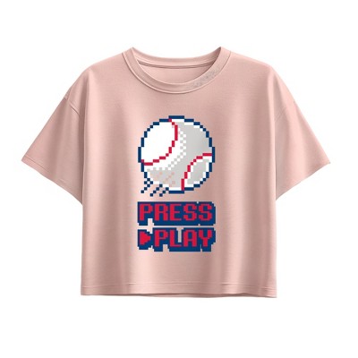 Girls' - Instant Message - Baseball Video Game Press Play Short Sleeve Boxy Graphic T-Shirt