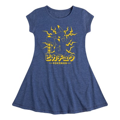 Girls' Pokémon Bundled Up Pikachu Fit & Flair Cap Sleeve Graphic Dress - Heather Navy - Small