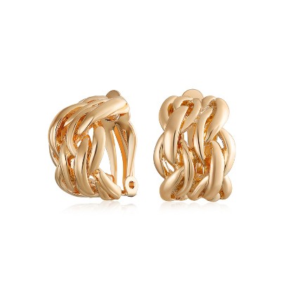 Bling Jewelry Twisted Cable Chain Weave Wide Half Hoop Clip On Earrings Non Pierced Ears