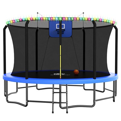Jumpfly 16FT Trampoline with Basketball Hoop and LED Lights, Recreational Trampolines for Kids and Adults with Net and Ladder, ASTM Approved, Blue