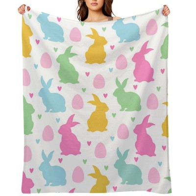 Easter Blanket Spring Bunny Rabbit Eggs Soft Flannel Colorful Decorative Throw Blanket Decor Holiday Square 50x60 inches
