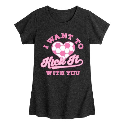 Girls' - Instant Message - I Want to Kick it With You Soccer Pink Fitted Short Sleeve Graphic T-Shirt