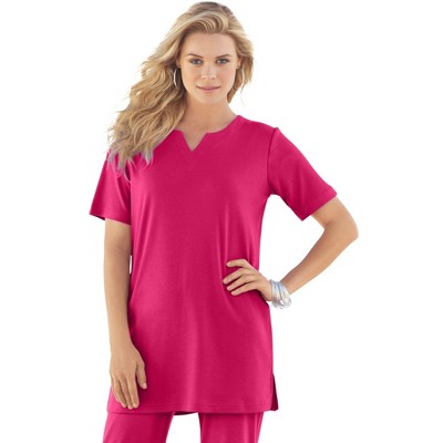 Roaman's Plus Size Soft Knit Tunic With Notch Neckline