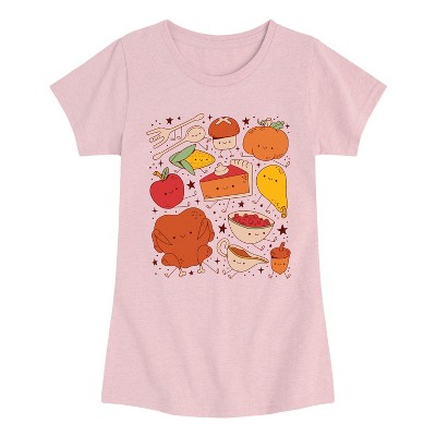 Girls' - Instant Message - Thanksgiving Characters Fitted Short Sleeve Graphic T-Shirt