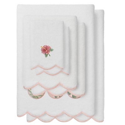 Linum Home Textiles 100% Turkish Cotton FLOWER CREST Scallop Embellished Towel Collection