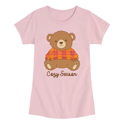 Girls' - Instant Message - Cozy Season Teddy Bear Fitted Short Sleeve Graphic T-Shirt