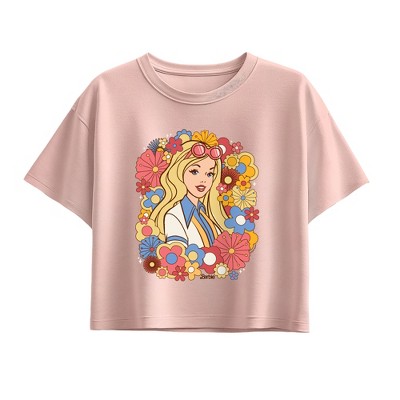 Girls' - Barbie - Floral Portrait Short Sleeve Boxy Graphic T-Shirt