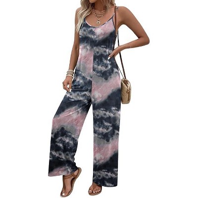 Ekouaer Women Jumpsuits Casual Boho Overalls Sleeveless Spaghetti Strap Long Pants Romper with Pockets