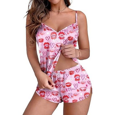 Ekouaer Satin Pajama Set Women Lingerie Pjs Camisole Top and Shorts with Ruffle Sleepwear