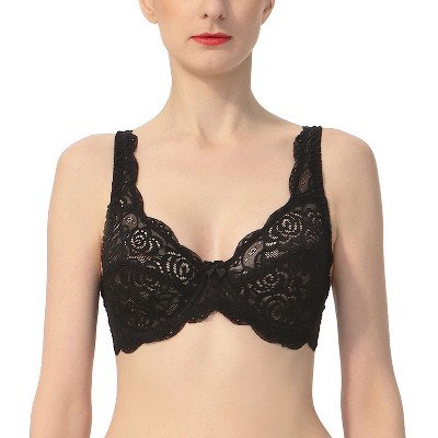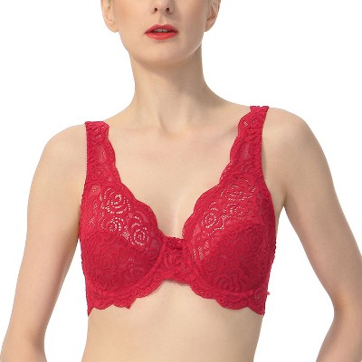 Avidlove Bras for Women Lace Mesh Bra Deep V Minimizer Bras Comfy Underwire Bralette No Padded Lingerie
