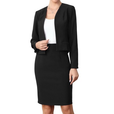 INSPIRE CHIC Women's Business Office Open Front Cropped Blazer and Jacket Pencil Skirt Suit Set 2 Pcs