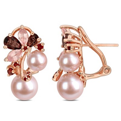EVERLY JEWELRY | Rose Plated Sterling Silver 1.14 CT TGW Pink Tourmaline Hoop Earrings