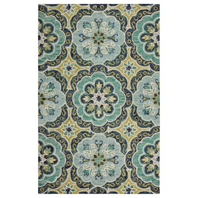 LR Home Dazzle Wool Area Rug Indoor in Green/Blue, 5' x 7'9"