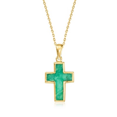 Ross-Simons 2.00 Carat Emerald Cross Pendant Necklace in 18kt Gold Over Sterling Size 18