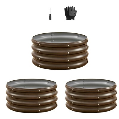 VEVOR Metal Raised Garden Bed, 3 Pcs 2 x 2 x 1 ft Outdoor Galvanized Planter Garden Box, Open Bottom Design, for Growing Vegetables, Brown
