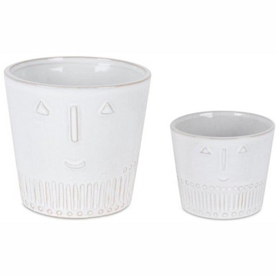 HomeRoots Set of Two White Porcelain 4 Ounce Abstract Face Pot Planters