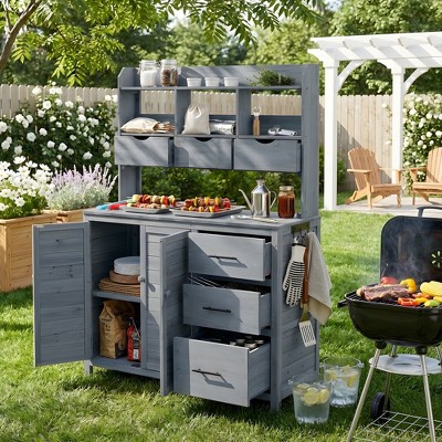 GDLF Outdoor Kitchen Island Prep Station Large Potting Bench with Stainless Steel Top
