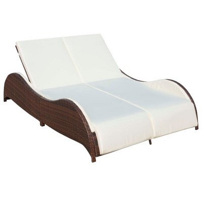 vidaXL Double Sun Lounger with Cushions Poly Rattan