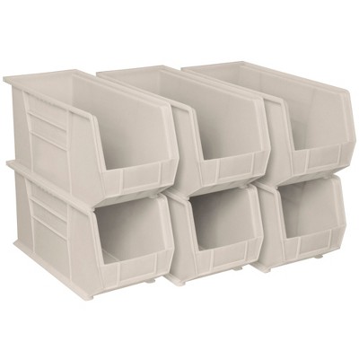 Akro-Mils 6 Pack AkroBins Plastic Storage Bins, Space-Saving Organizers, Stone