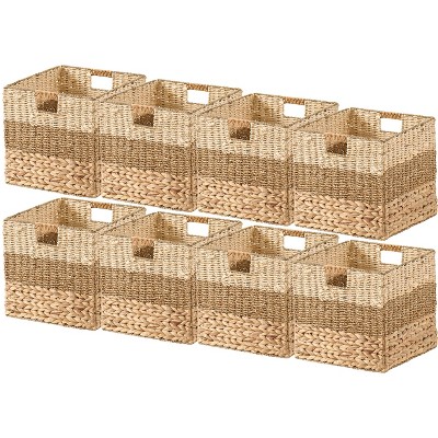 Ornavo Home 13" x 13" Inch Water Hyacinth Storage Basket with Handles - Set of 8