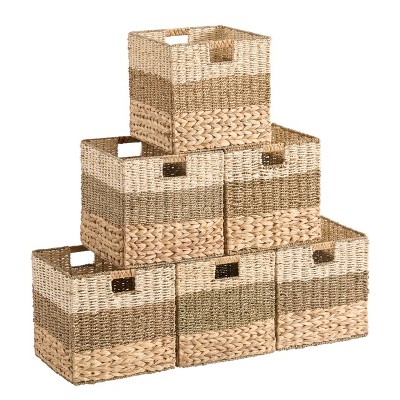 Ornavo Home 13" x 13" Inch Water Hyacinth Storage Basket with Handles - Set of 6