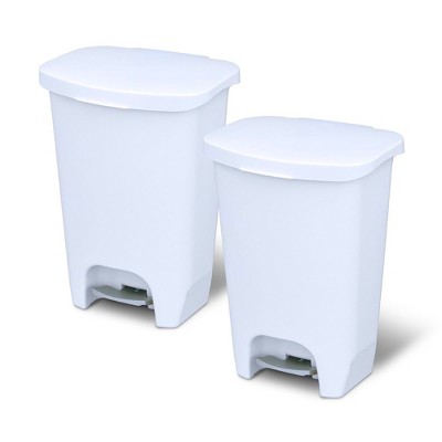 Glad 13 Gal Trash Can with Step Pedal and Odor Protection, White, Pack of 2