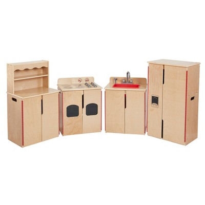 ECR4Kids Play Kitchen Cupboard, Stove, Sink, and Refrigerator, Wooden Playset, 4-Piece