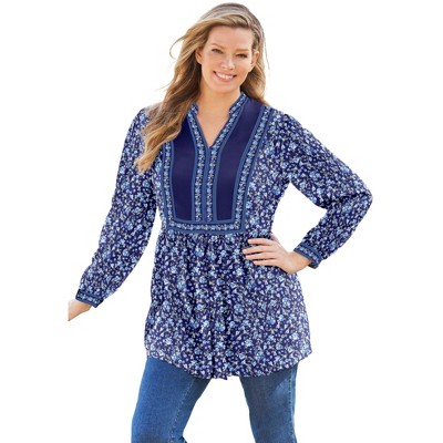 Women's Tie - Side Drawstring Shirt, V - Neck Collared Loose Top, Beach & Casual Cover - Up Tunic