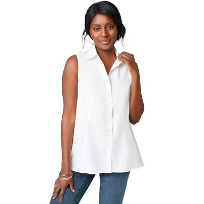Jessica London Stretch Cotton Poplin Sleeveless Shirt