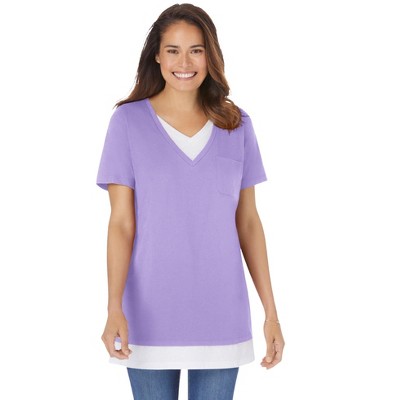 Woman Within Rayon Three-Quarter Sleeve Effortless Tab-Front Blouse