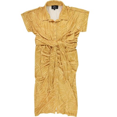 Nina Parker Womens Plus Size Ruched Tie Front Floral Shirt Dress