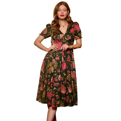 Jessica Howard Womens Twist Front Floral Midi Dress