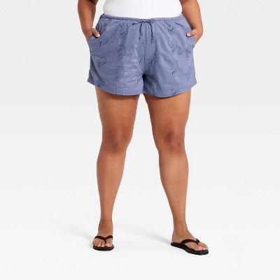 Women's Embroidered Linen Pull-On Shorts - A New Day™