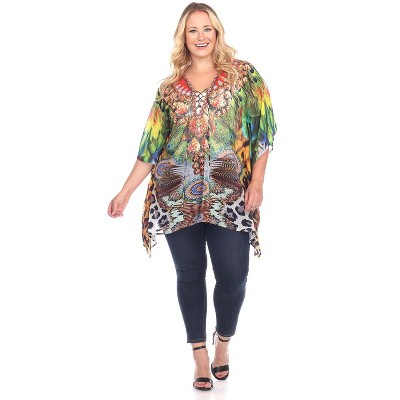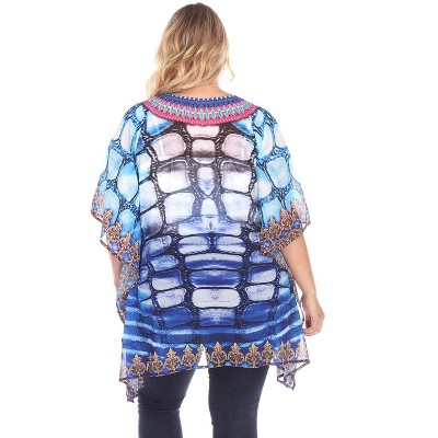 Women's Plus Size Animal Print Caftan with Tie-up Neckline - One Size Fits Most Plus - White Mark