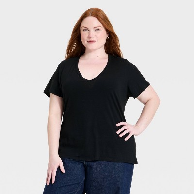 Women's Lace Trim V-Neck Ribbed Top - A New Day™