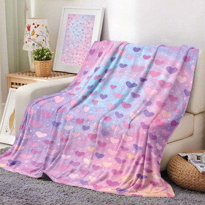 Lomsoe 1pc Pink & Purple Heart Flannel Blanket - Soft Warm Cozy Bedspread Suitable for Naps, Camping, Travel, Valentine's Gift.