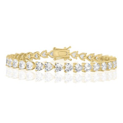 Simona Heart CZ Tennis Bracelet - Gold Plated - Available Colors: Yellow, Silver