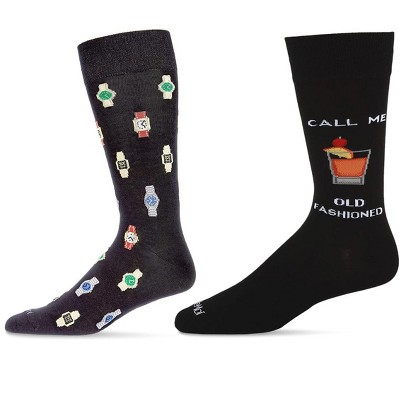 Memoi Men's "Call Me Old Fashioned" Rayon From Bamboo Novelty Crew Sock Black 10-13