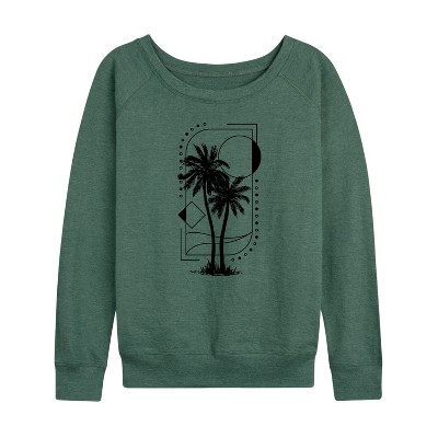 Women's - Instant Message - Geometric Palm Tree Scene Lightweight French Terry Wide Neck Long Sleeve Graphic Shirt