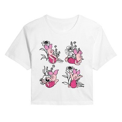 Women's - Winnie the Pooh - Piglet Flowers Cropped Graphic T-Shirt
