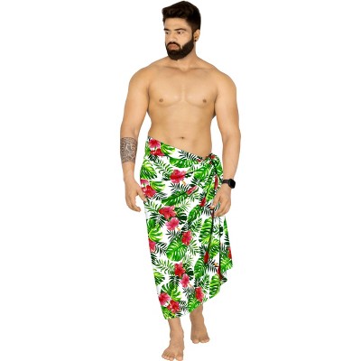 HAPPY BAY Men's Swimwear Cover Up Swim Wrap Beachwear Sarongs Beach Lava Lava Hawaiian Pareo Summer Long Sulu for Men One Size Green, flamingo