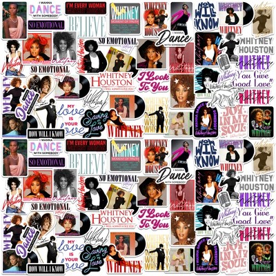 Whitney Houston Variety 100ct Vinyl Large Deluxe Stickers Pack Iconic Music Album & Quote Artwork Decals for Laptop, Water Bottle, Tablet,