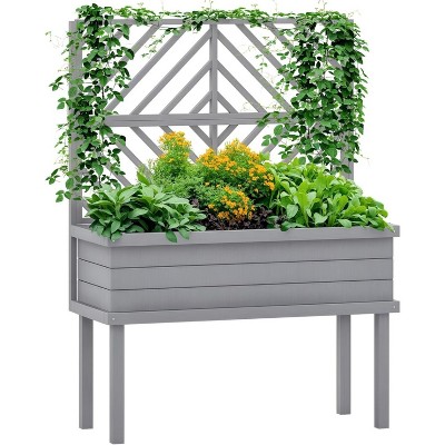 Outsunny Raised Garden Bed with Trellis for Climbing Plants, Wood Planter with Legs, Drainage Holes & Filter